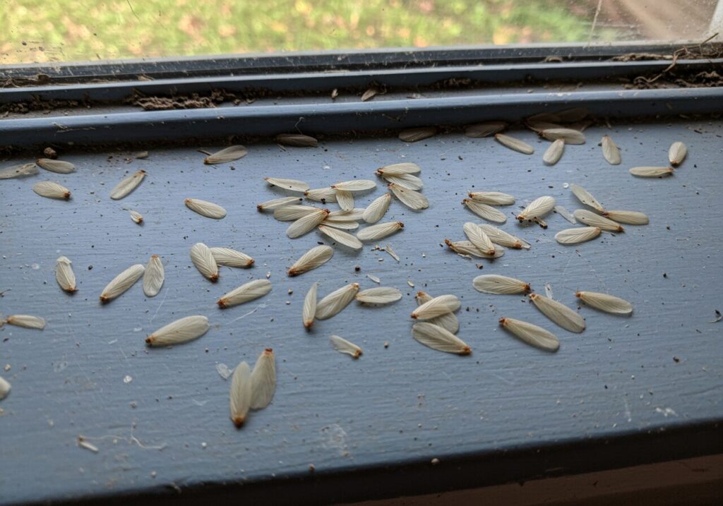 春から夏にかけては、羽アリが発生しやすい時期です。窓際やベランダ、玄関などに羽アリの死骸や羽が落ちていないかをチェックしましょう。群飛した羽アリは着地後に羽を落とすため、羽だけが落ちている場合があります。