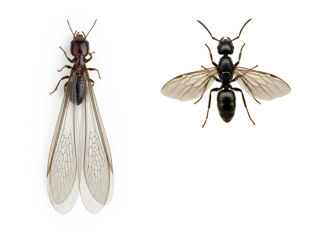 最新の分類体系では、シロアリはゴキブリ目、アリはハチ目に分類され、見た目、生態ともに大きく違います。よく見れば見分けることも可能です。