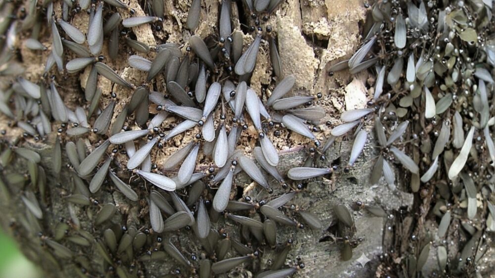 シロアリの成虫は巣の個体数が増えて手狭になったり、餌となる木材が近くになくなったりすると、新しい場所を求めて集団で一斉に飛び立ちます。