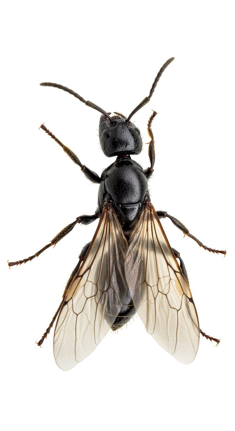 羽アリ同士を比較すると、ヤマトシロアリは前羽と後羽がほぼ同じ形・大きさなのに対し、普通のアリの羽は前羽が後羽よりも大きく、太い線が入っています。