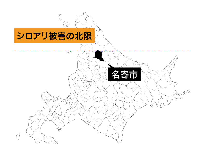 シロアリ被害が確認されている最北端は名寄市で、同市より南の地域ではすでにシロアリ被害が進行していてもおかしくないのです。